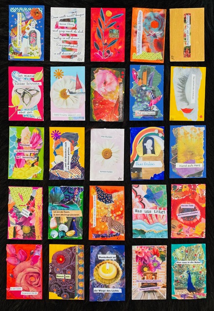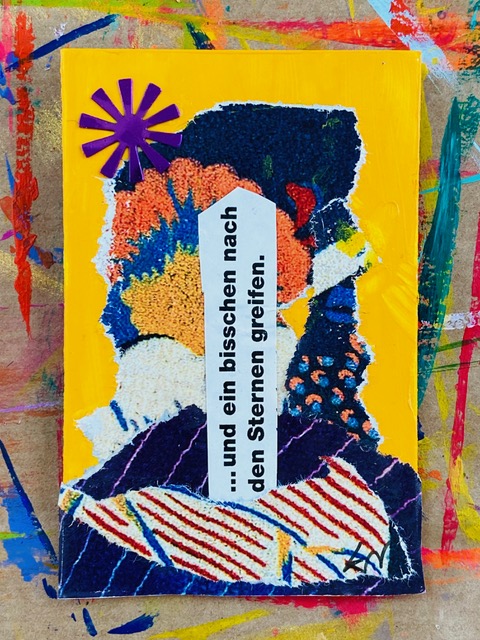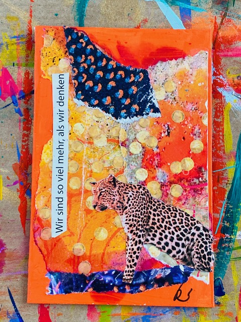 Auflage: 26 Mixed-Media-Collagen aus Acryl-Farbe und Zeitungsschnipseln, jedes ist ein Unikat